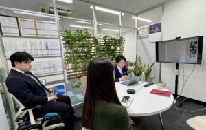 勉強会は大阪本社で行うことが多いですが、東京オフィスと外出中の方にはオンラインで繋いで、全員が情報を共有できる体制を大切にしています 。