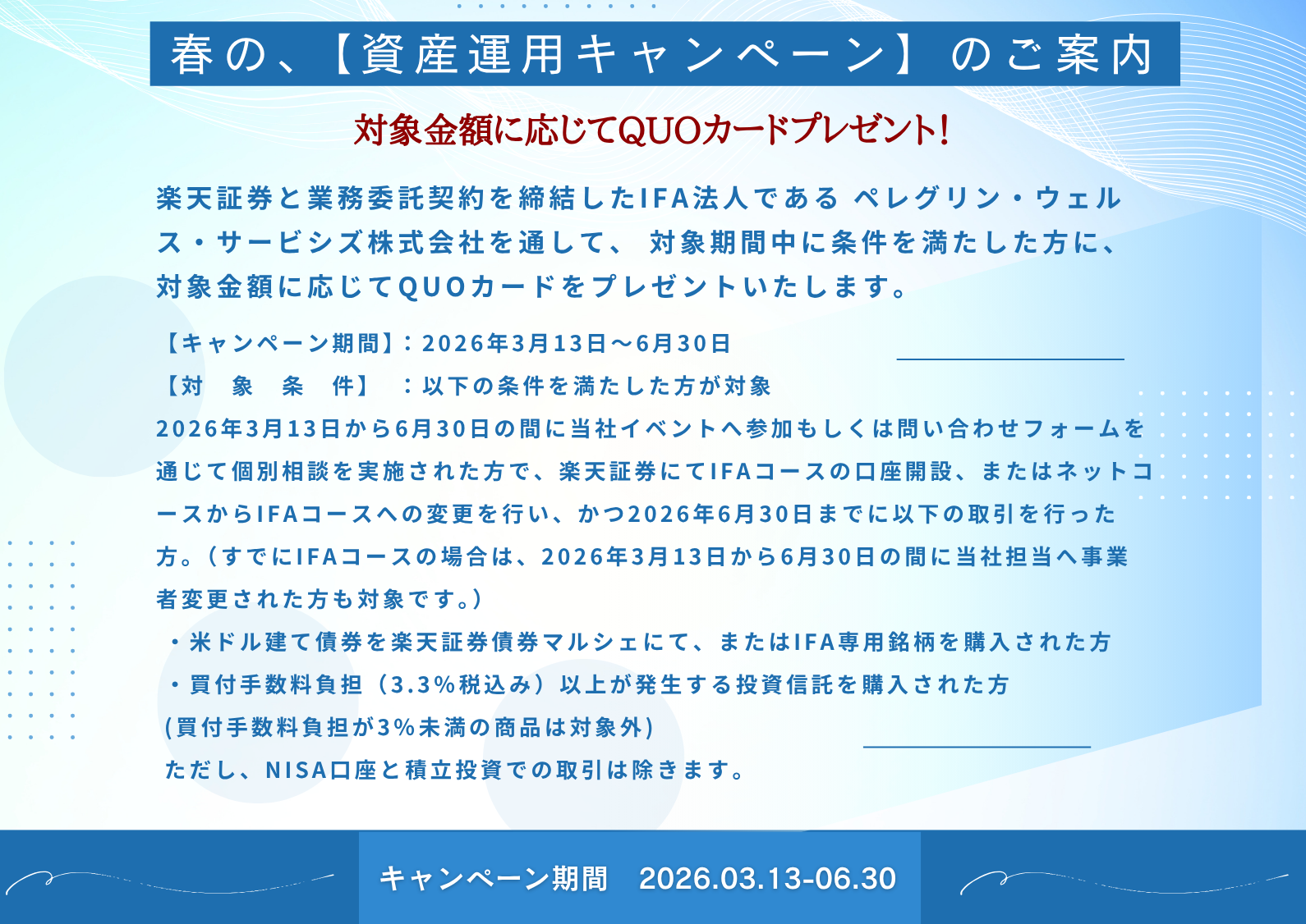 ペレグリン・ウェルス・サービシズ株式会社 金融商品仲介業者 登録番号:近畿財務局長(金仲)第391号
